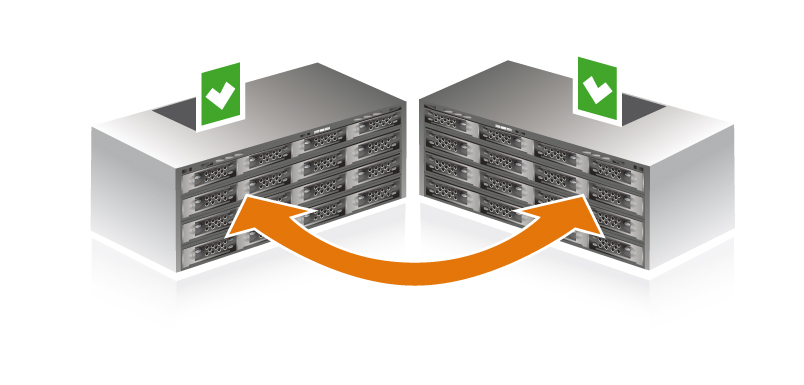 Hochverfügbare Storage Cluster bestehen aus zwei identischen Systemen, die ihren Datenbestand permanent untereinander abgleichen. Fällt das primäre System aus, über­nimmt wenige Sekunden später das sekundäre System dessen Funktion. Der Administrator wird automatisch benachrichtigt und kann sich gleich um die Beseitigung des Problems kümmern.